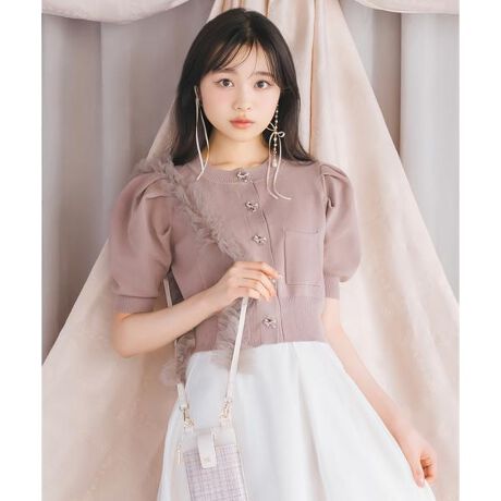 ビジューリボンが煌めく、大人可愛いタックスリーブカーデ【Design】・ポワンとしたタックスリーブが可愛いカーディガンがリボンの日仕様にアップデート♪・キラキラのリボン型ビジューボタンが華やかさを演出してくれます。・今すぐ着られる袖丈&秋気分にスイッチしてくれるオータムカラー展開なのポイントです!・フロントボタンで着脱も簡単、前ポケット付き◎・短めの丈感と程よいフィット感で、どんなコーディネートにもバランスよく合わせやすい一枚です♪【Fabric】・身体に沿うシルエットで、美しさと着やすさを両立する素材を使用しました。・ホワイト、ピンク、ボルドー、ブラウン、ブラックの5色展開となります。【Care】ドライクリーニング