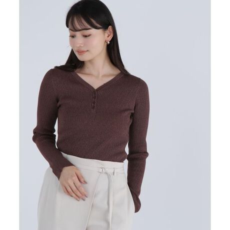 繊細なラメ糸が艶めき、Vネックとアクセントボタンでこなれた抜け感を作るリブニット。すっきりとしたVネックがデコルテを美しく見せ、軽やかな印象です。細めのリブ編みが体に沿い、程よいフィット感ですっきり着られるデザイン。ONにもOFFスタイルにも着回せて、1枚で様になる汎用性の高さも魅力です。<素材>繊細なラメ糸を使った程よい肉間のリブニットですl。<詳細>仕様・開閉なし裏地・なし透け感・なし / 光沢・あり / 伸縮性・あり生地の厚さ・普通 ※モデルの着用画像の場合、光の当たり具合により、実際の色味と異なって見えることがございます。色味は、商品単体の画像をご参照ください。