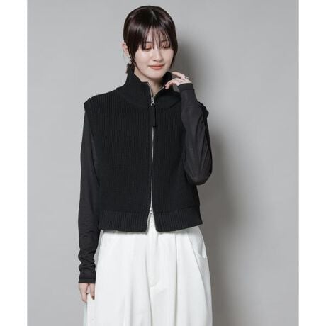 合わせるだけでトレンド感をプラスできる、ハイネックのドライバーズニットベスト。フロントZIPは全て閉じる・開けて羽織る・上のみ少し開けて衿を折り返す・下のみ開けるなど、アレンジ次第で幅広い着こなしを楽しめるのも魅力です。