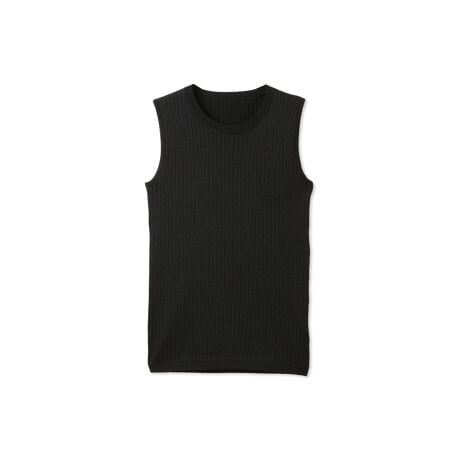 微光沢感のある糸を使用したノースリーブニットトップスです。