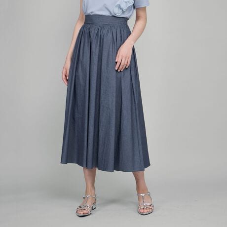関連ワード:QUEENS COURT クイーンズコート レディース 新作 フェミニン 大人コーデ 通勤 2025秋冬 2025AW 秋 秋服 コットン デニム 無地 ゴム フレアスカート ギャザースカート