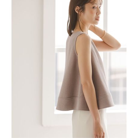 適度なハリとストレッチ感があるので体から離れる立体的なフォルムを作り出し、ハイウエストのボトムとも好相性◎。