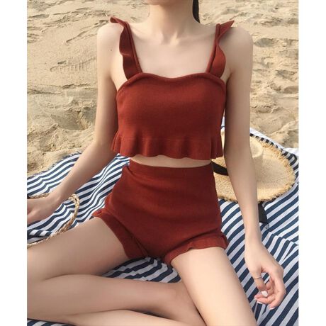 フェミニンなフリルが魅力のビキニ。シンプルでエレガント、どんなシーンでも洗練されたスタイルに。パンツはハイウエストで股上が深く、お腹までしっかり隠れるシルエットでセクシーになりすぎずスタイルをしっかりカバー。伸縮性:ありパッド:あり