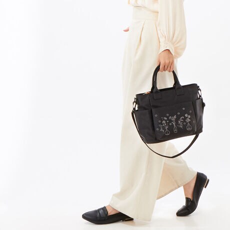 「glanta」ドットと花瓶刺繍スクエアトートショルダーバッグ