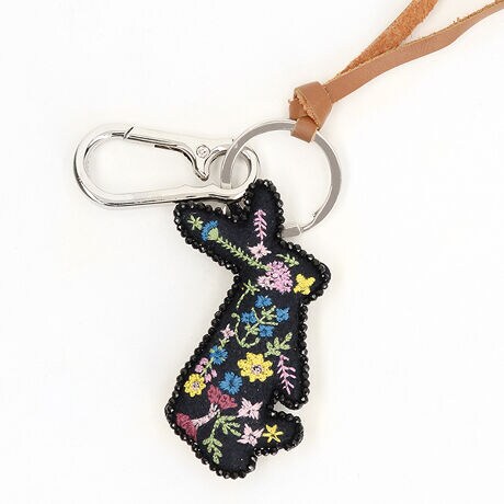 [型番:34030053]ウサギのモチーフチャーム。SUPER HAKKAで好評だったブローチがチャームになって登場しました。縁に施したカットビーズがキラキラとポイントになるデザインです。背面にはロゴ刺繍をあしらいました。大きめのフックと革ひもの両方が付いているので、少し太めの持ち手にも取り付けることが出来ます。お手持ちのバッグやglantaに合わせてご使用いただけます。