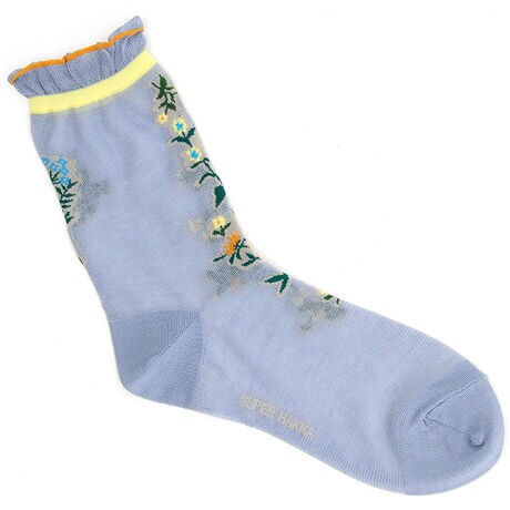 [型番:34060053]少し透け感のあるラインフラワージャカードソックス。ライン状に並ぶ花々を、フロント部分にジャカードで表現しました。背面にもポイントで柄が入っているので、ローカットのシューズなどに合わせていただくと柄が綺麗に見えておすすめです。