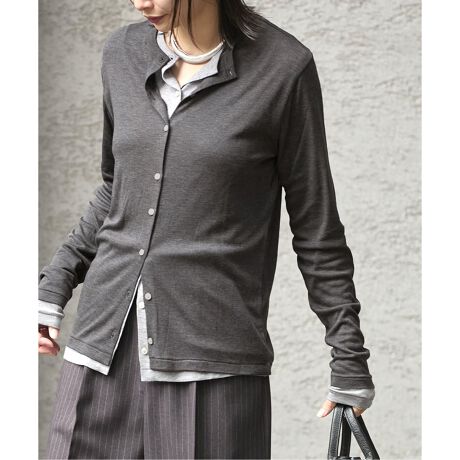 テンセル混なので肌触りがよく柔らかく程よいシアー間で、1枚でも羽織でもシーズン長く活躍するコンパクトなクルーネックカーディガン。