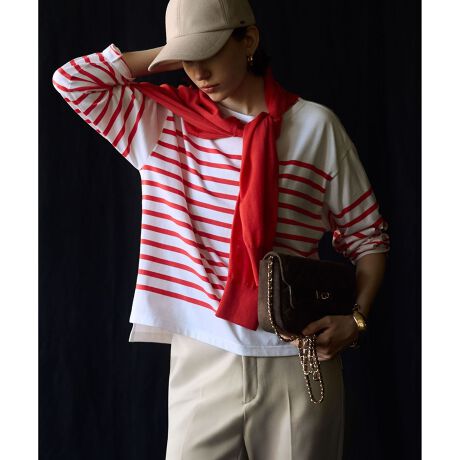 ■素材肉感を拾わない中肉天竺素材を使用しており、生地の厚みがありながらも着心地の良い伸度を持つのArmor-luxならではの品質です。カジュアルになりすぎないパネルボーダーは23区オリジナルデザインで、上品な大人のカジュアルスタイルを演出します。