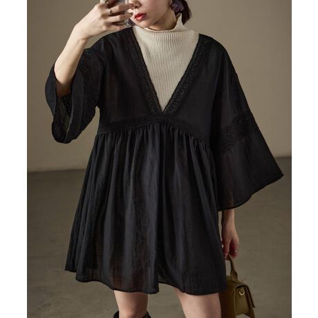 Fashion Letter ファッションレター ふんわり広がるバタフライシルエットが着映えるチュニックワンピース。