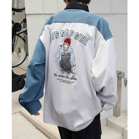 ILL'S 【RED CAP GIRL】 バックプリント クレリック 配色長袖シャツ