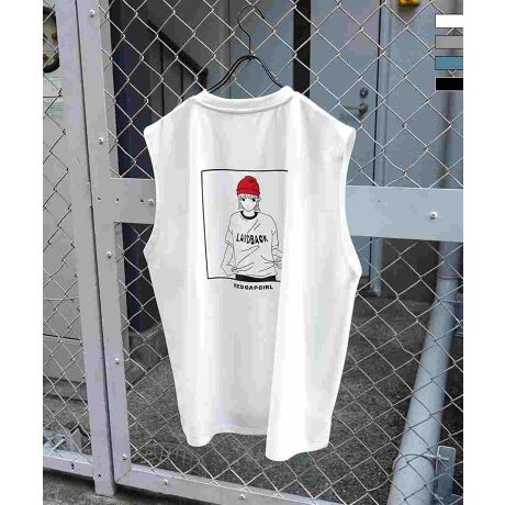 ILL'S 【RED CAP GIRL】 バックプリント ノースリーブ ポンチカットソー