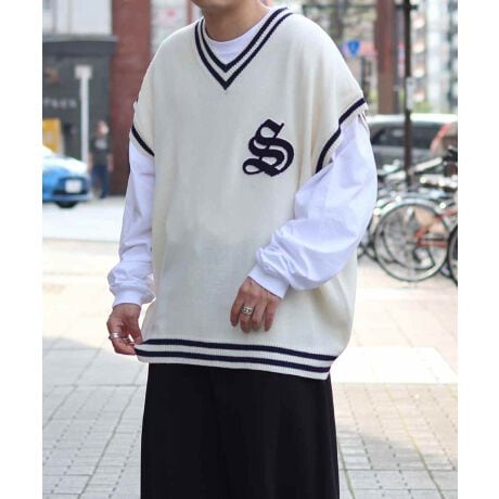 1着はおさえておきたい!ILL'Sオリジナルのカレッジビッグニットベスト。