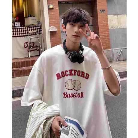 ILL'S 韓国ストリート ビッグシルエット ベースボールプリントTシャツ