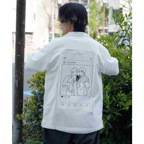 ILL'S 【Roo ルー】カップルフォト バックプリントオープンカラーシャツ
