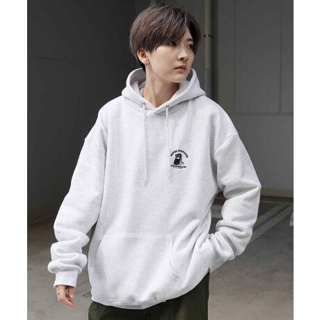ILL'S ヒゲオジサン刺繍A ワンポイント刺繍ロゴ 裏起毛プルオーバーパーカー