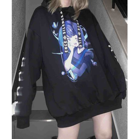 サブカル感あふれるアニメイラストがインパクト大なデザインパーカー。