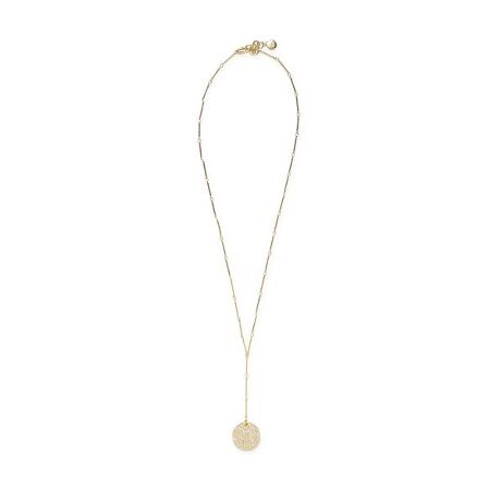 表情感のあるコイン風のメタルプレートが、スタイリングに華とポイントを添えてくれるネックレスです。