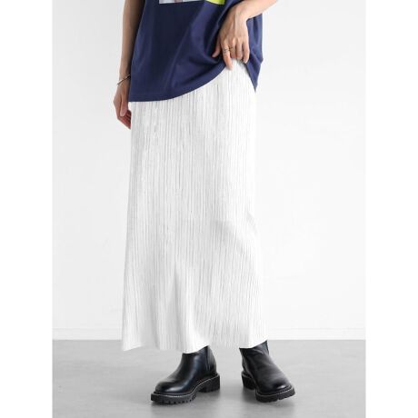 細かなプリーツ生地と存在感のある箔加工が華やかなナロースカート。