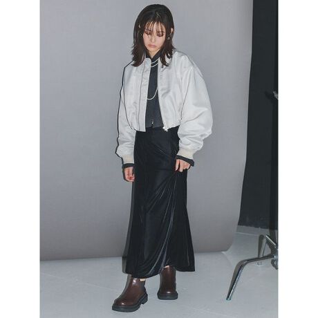 今年らしいベロア素材で、秋のスタイリングを華やかに演出してくれるナロースカート。