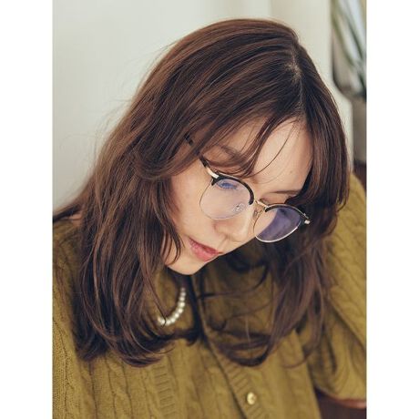 魅力的なアセテートのハーフリムに、メタルの細フレームを組み合わせた、コンビネーションタイプ。丸みを帯びたレンズが優しい印象で、顔立ちを整えてくれます。