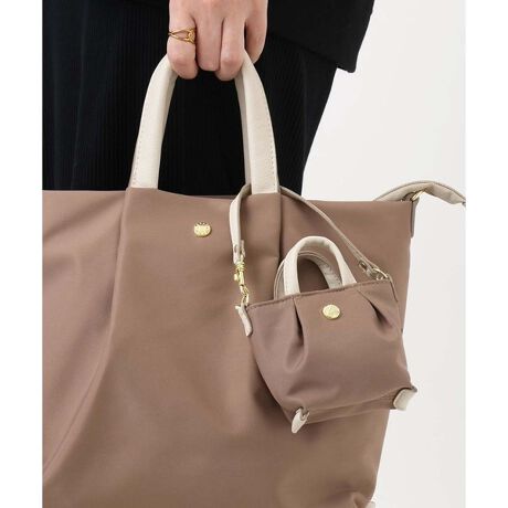 肩楽ナイロンショルダーをそのままミニチュアサイズにしたチャームバッグ。