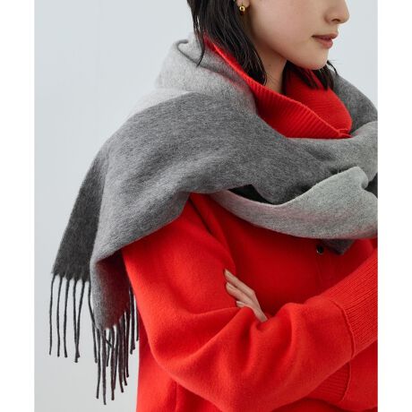 リバーシブルで使える、柔らかなラムウール100%の大判ストール。やさしい色味が、冬の装いに温もりを添えます。