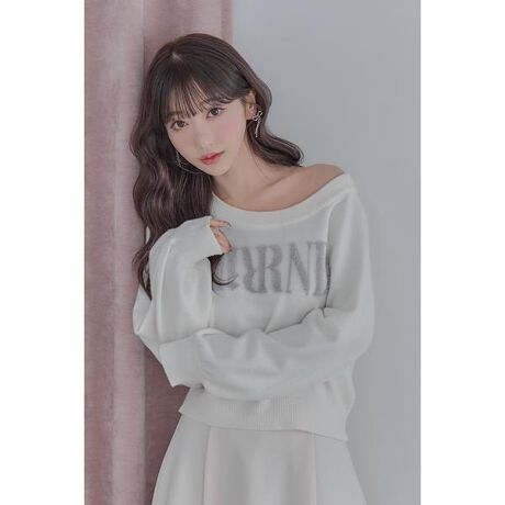 【Rちゃんがデザイナーを務めるRiuとriendaのコラボレーションアイテム】【Design】Riuとriendaのコラボレーションロゴを立体感のあるシャギーロゴで表現されたニットトップス。オフショル、セットイン2wayで着用可能となっております。バスト周りや袖ぐりはゆったりとしており、リラックス感のあるシルエットとなっております。合わせるアイテム次第で、フェミニンからカジュアルまで様々なスタイリングにハマる優秀なトップス。肌ざわりの良い糸を使用し着心地も抜群◎■透け感:なし■光沢感:なし■伸縮性:あり■裏地:なし