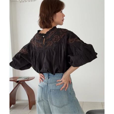 ◆温もりが映える、たっぷりギャザーのハンド刺繍ブラウス