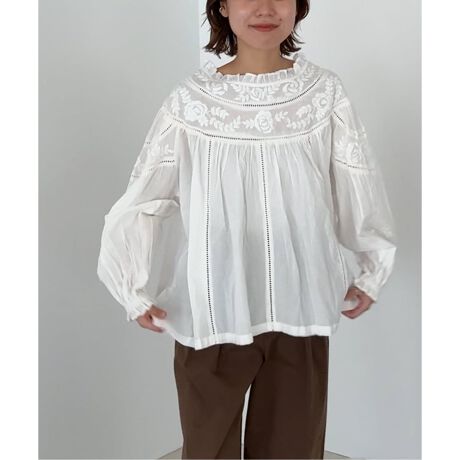◆温もりが映える、たっぷりギャザーのハンド刺繍ブラウス