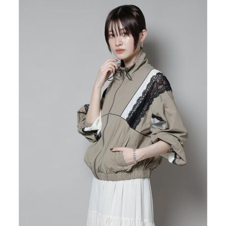 ・繊細なレースやパイピングコードがスポーティーなブルゾンにレディさをプラス