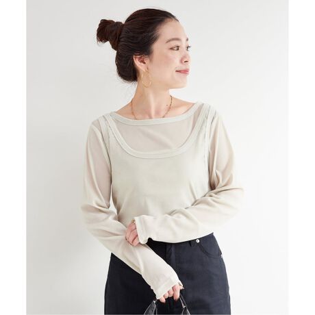 繊細なチュールフロッキー素材のロンTEE×タンクのレイヤードアイテム。
