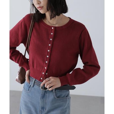 春先から使いやすいコットン混の総針編みカーディガン。コンパクトながら襟ぐりやバストはややゆとりを持たせ、羽織った際に窮屈にならないようにしています。フロントには半透明のドットボタンを間隔狭く並べて、デザインポイントに。キャミワンピースやジャンパースカートの上からはもちろん、肌寒い時にはカットソーやブラウスの上に羽織るのがおススメ。さっと羽織れるカーディガンは、春夏シーズンにピッタリのアイテムです。※モデルの着用画像の場合、光の当たり具合により、実際の色味と異なって見えることがございます。色味は、商品単体の画像をご参照ください。