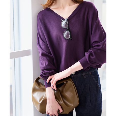 1枚で着やすい浅めのVネック開きニットが登場!