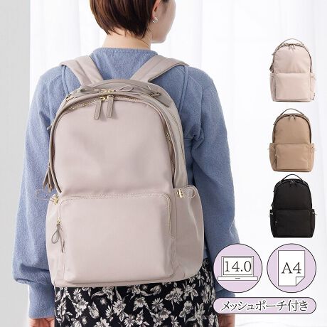 上品なパイピングとリボンディティールが特徴のきれいめリュック。