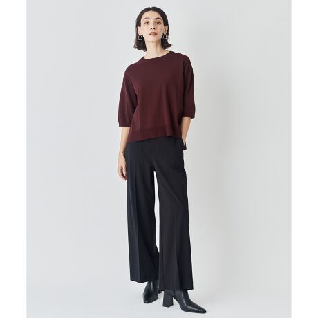 ■デザイン毎シーズン人気の「マイビューティニット」シリーズから、ハーフスリーブプルオーバーが登場!クロップド丈でボクシーなシルエットが、こなれ感を演出します。前後差をつけたヘムラインとサイドスリットで、どんなボトムとも相性良くご着用いただけます。