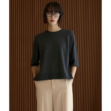 ■デザイン毎シーズン人気の「マイビューティニット」シリーズから、ハーフスリーブプルオーバーが登場!クロップド丈でボクシーなシルエットが、こなれ感を演出します。前後差をつけたヘムラインとサイドスリットで、どんなボトムとも相性良くご着用いただけます。