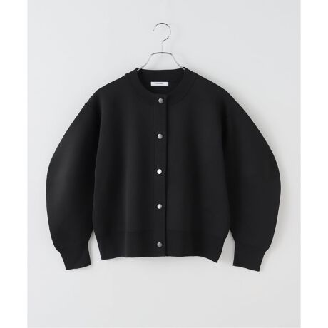 膨らみのあるポリエステル糸で立体感あるバナナスリーブデザインのオーバーサイズクルーカーディガン。