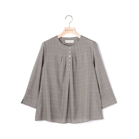 [型番:72254172141]秋のおしゃれ心を盛り上げるグレンチェック柄のブラウス。気負わずに着こなせるプルオーバーデザインですが、胸元のボタン使いが適度なきちんと感を加えています。すっきり見える7分袖も、愛用したくなるポイント。※商品画像はサンプルを使用しているため、実際の商品と色味などの仕様が異なる場合がございます。予めご了承ください。