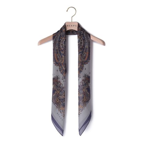 [型番:72251100101]ほど良くスパイスの効いたペイズリー柄のスカーフ。シンプルな着こなしを引き締めたり、アクセントを加えたりと、幅広く活躍します。なめらかなシルク混素材で肌ざわりも快適です。※商品画像はサンプルを使用しているため、実際の商品と色味などの仕様が異なる場合がございます。予めご了承ください。model:T.175/B.83/W.59/H.89着用サイズ:F