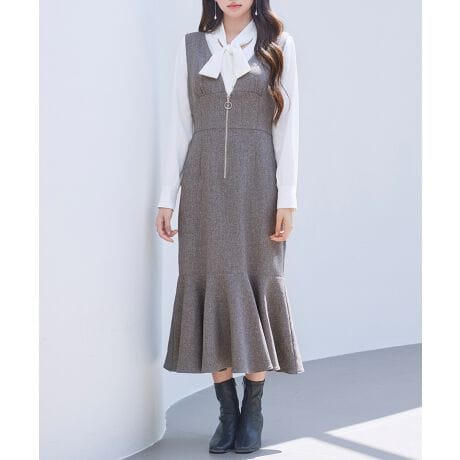細見え&高見えするトランペットラインのマーメイドロングワンピース。