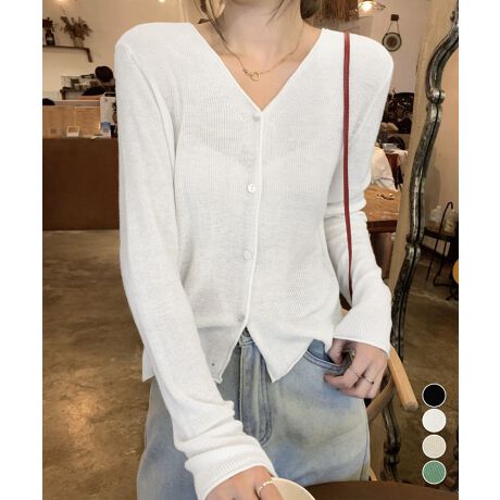 シンプルながら着回し力抜群のリブニットカーディガン。