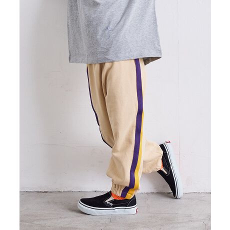 【サイドのカラーラインでスポーティに決まるスウェットパンツ】