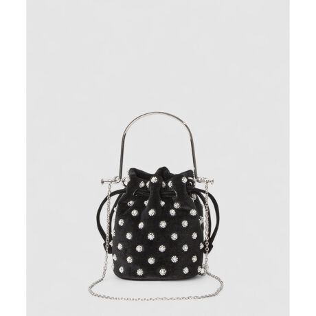 パールが一面に刺繍されたベロアのミニバッグ。メタルのハンドルもアクセントになっています。ドレスアップスタイルにもカジュアルスタイルのスタイルアップにもお勧めです。