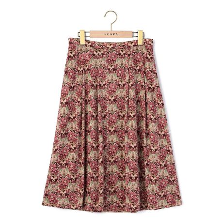 [型番:72251142331]ウエストギャザーの快適なフレアスカート。フラワー柄のリバティプリントが華やかなデザインです。シルエットは広がりすぎず、安心のミディアム丈は気になる脚のラインをカバー。軽いポリエステル素材で、シワになりにくいのも魅力です。自宅でのお手入れも簡単に行えます。※商品画像はサンプルを使用しているため、実際の商品と色味などの仕様が異なる場合がございます。予めご了承ください。model:T.175/B.83/W.59/H.89着用サイズ:38