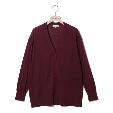 飽きのこないベーシックなデザインのVネックニットカーディガン。腰にかかるやや長めの着丈で、裾の両サイドにはスリットが施されています。滑らかな質感で気品が漂うウール100%素材。同シリーズのプルオーバーニットとアンサンブルでお召しいただけます。洗練されたカラーバリエーションを取り揃えています。