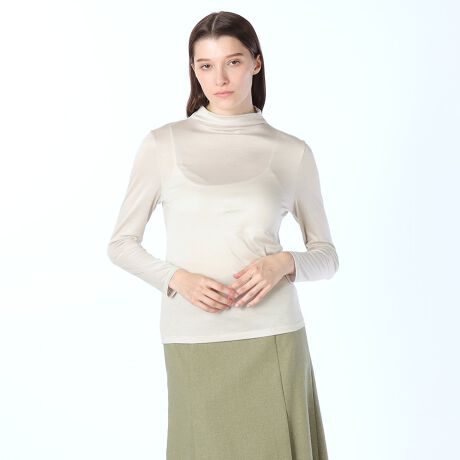 シンプルな無地のロングスリーブカットソー。襟元まで温かいハイネックタイプです。ハイクオリティなジャージ素材を使用しました。薄手の生地ですので、秋口から春先までロングシーズン着回し可能です。適度にフィット感がありモタつかないシルエットのトップスは、ジャケットやカーディガンのインナーにも最適。