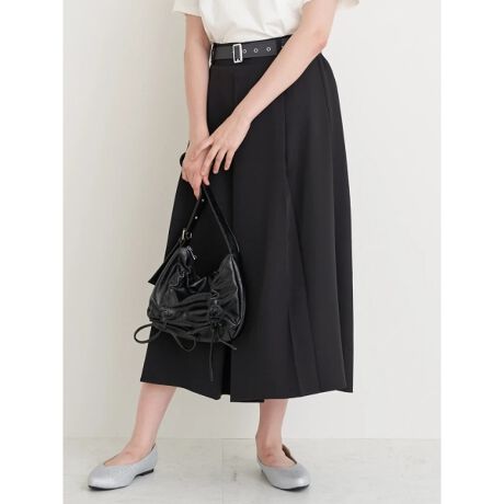 ・太めのボックスプリーツですとんと落ちるシルエットが大人な印象に。