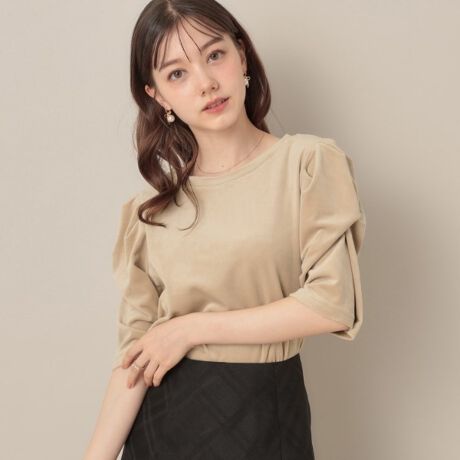 表面がほんのり起毛した、秋らしいベロア素材を使用したデザインTシャツ。