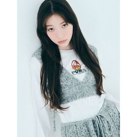 <b>【透かし編み×レースアップが主役のニットビスチェ】</b>