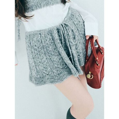 アイレット入りの透かし編みと、ふわっとしたメランジ糸が印象的なニットベルト。裾には波打つような立体フリルを施し、ウエストにアクセントと華やかさをプラスします。お手持ちのボトムやデニムに合わせてバランスを取ったレイヤードはもちろん、同素材のニットビスチェ(品番LWFT254071)と合わせてセットで着用もおすすめ。